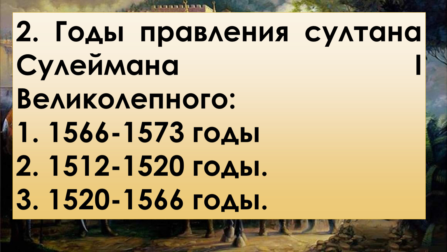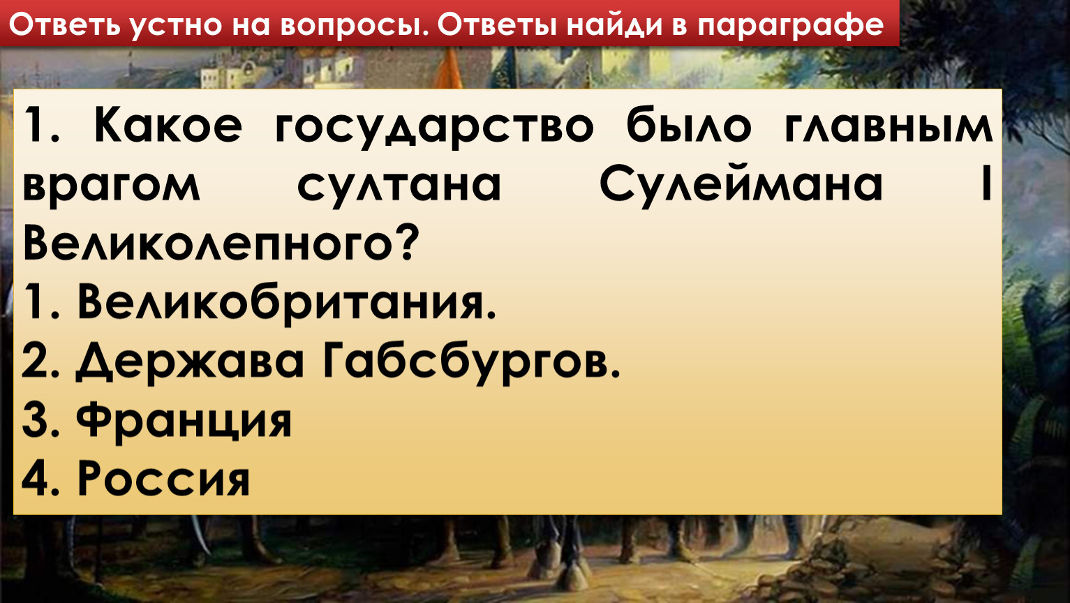 1. Какое государство было главным врагом султана Сулеймана I Великолепного?