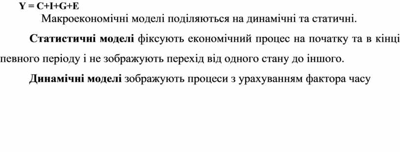 Макроекономічні моделі поділяються на динамічні та статичні.