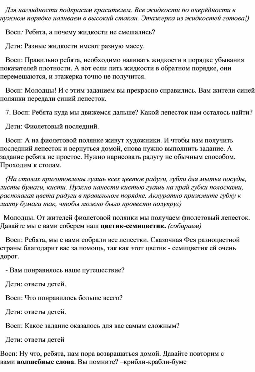 Восп: Ребята, мы с вами собрали все лепестки. Сказочная Фея разноцветной страны благодарит вас за помощь, так как этот цветик - семицветик ей очень дорог.