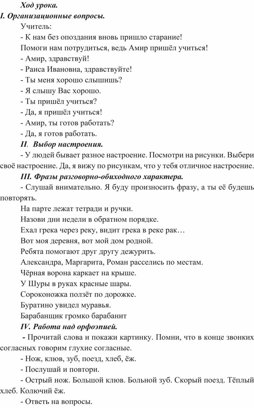 Конспект открытого занятия по развитию слухового восприятия и формированию произносительной стороны речи
