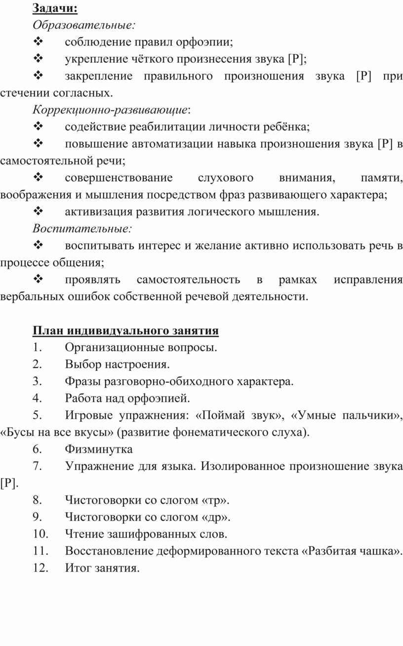 Тема: Работа над орфоэпией. Автоматизация звука [Р]. Работа с деформированным текстом.