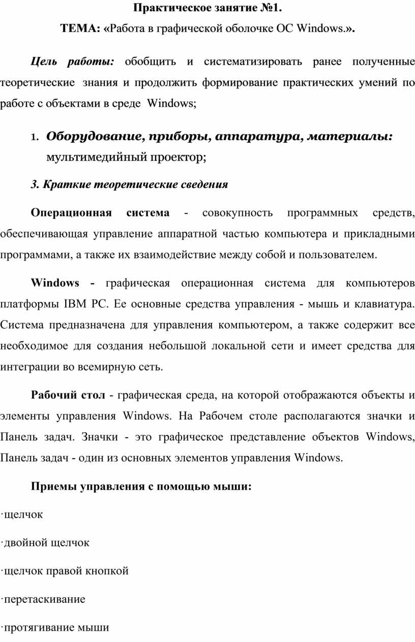 ТЕМА: «Работа в графической оболочке ОС Windows.».