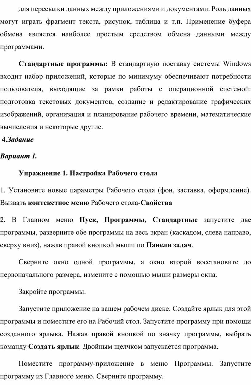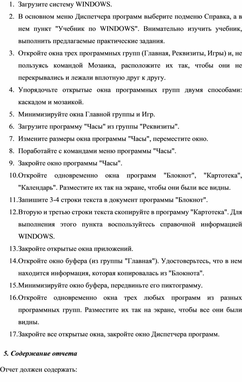 Цель работы: обобщить и систематизировать ранее полученные теоретические знания и продолжить формирование практических умений по работе с объектами в среде Windows;