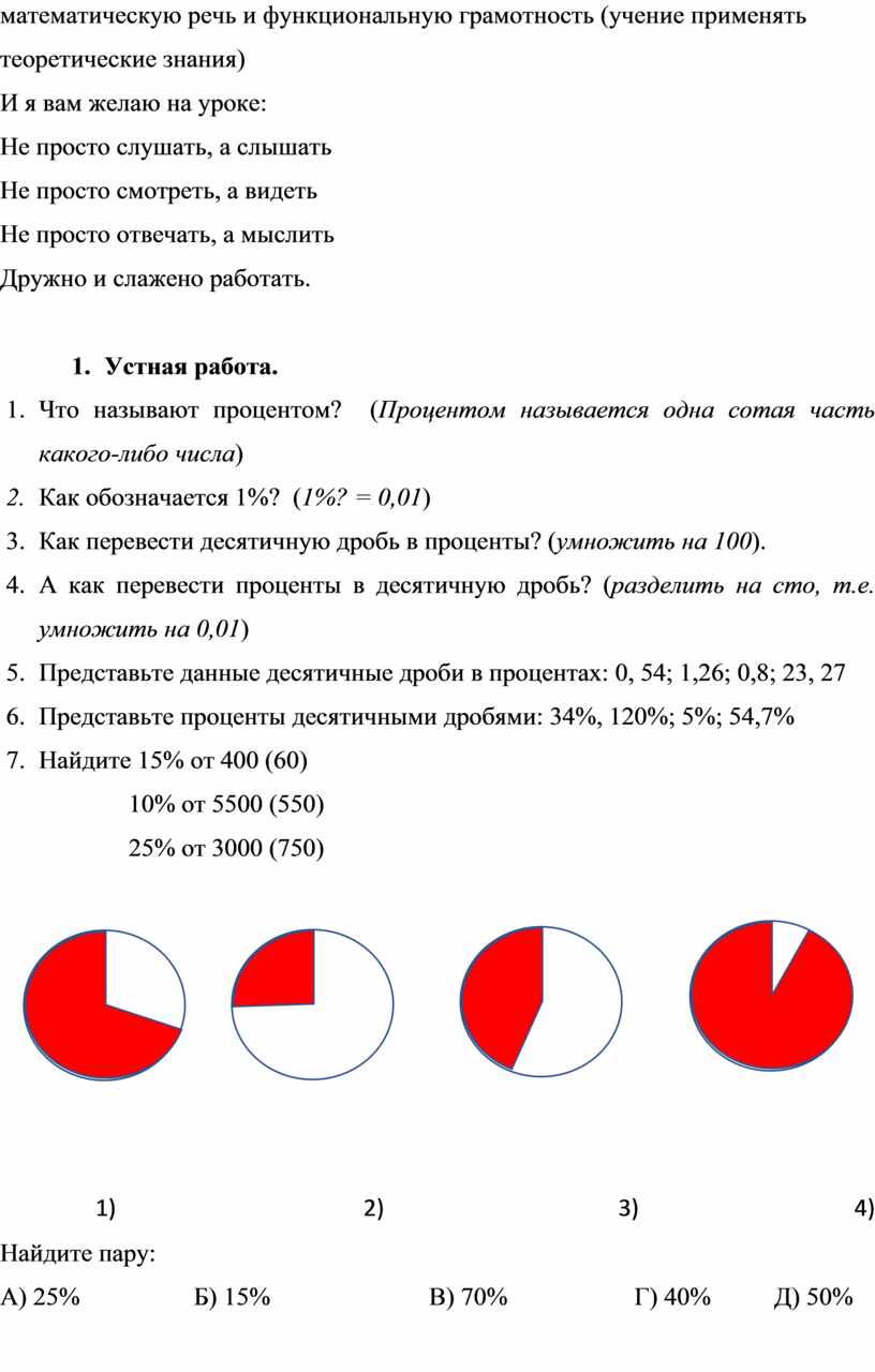 1. Что называют процентом? (Процентом называется одна сотая часть какого-либо числа)