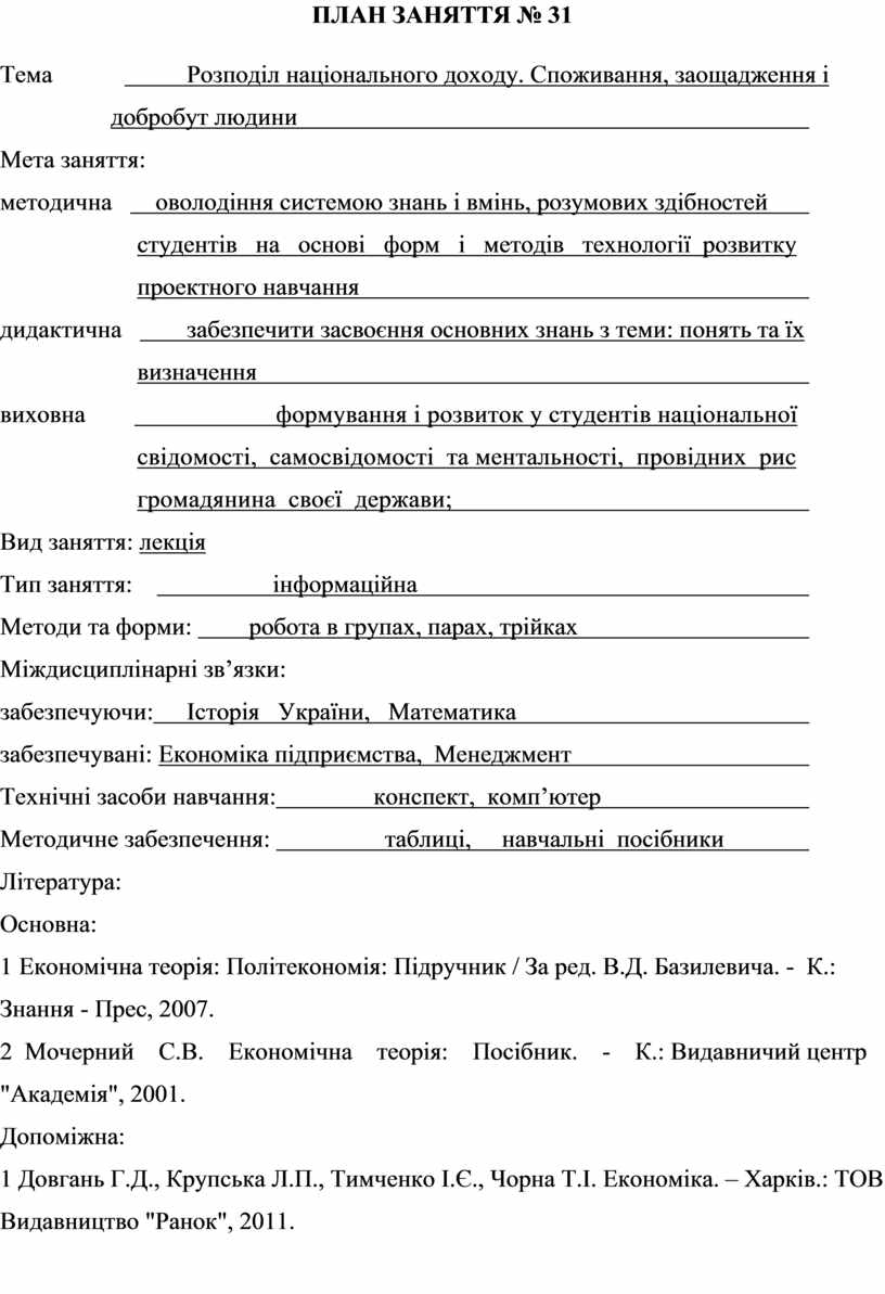 3.1 Тема заняття: Розподіл національного доходу. Споживання, заощадження і добробут людини