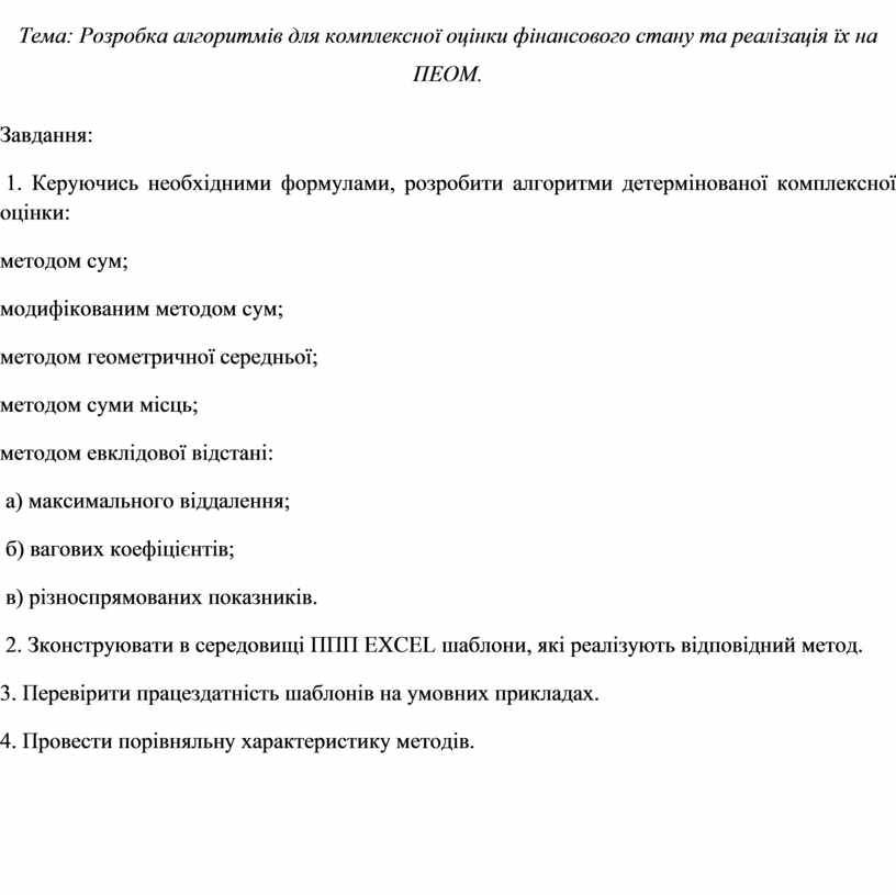 Тема: Розробка алгоритмів для комплексної оцінки фінансового стану та реалізація їх на ПЕОМ.