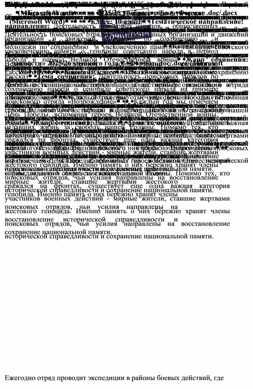 Тема сочинения: Деятельность поисковых отрядов по сохранению памяти о геноциде советского народа на примере поискового отряда «Возрождение» |