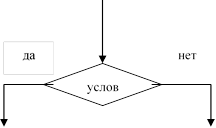 Неполное ветвление — в зависимости от результата проверки условия либо выполняются действия одной ветви «да» (оператор), либо эти действия не выполняются. |