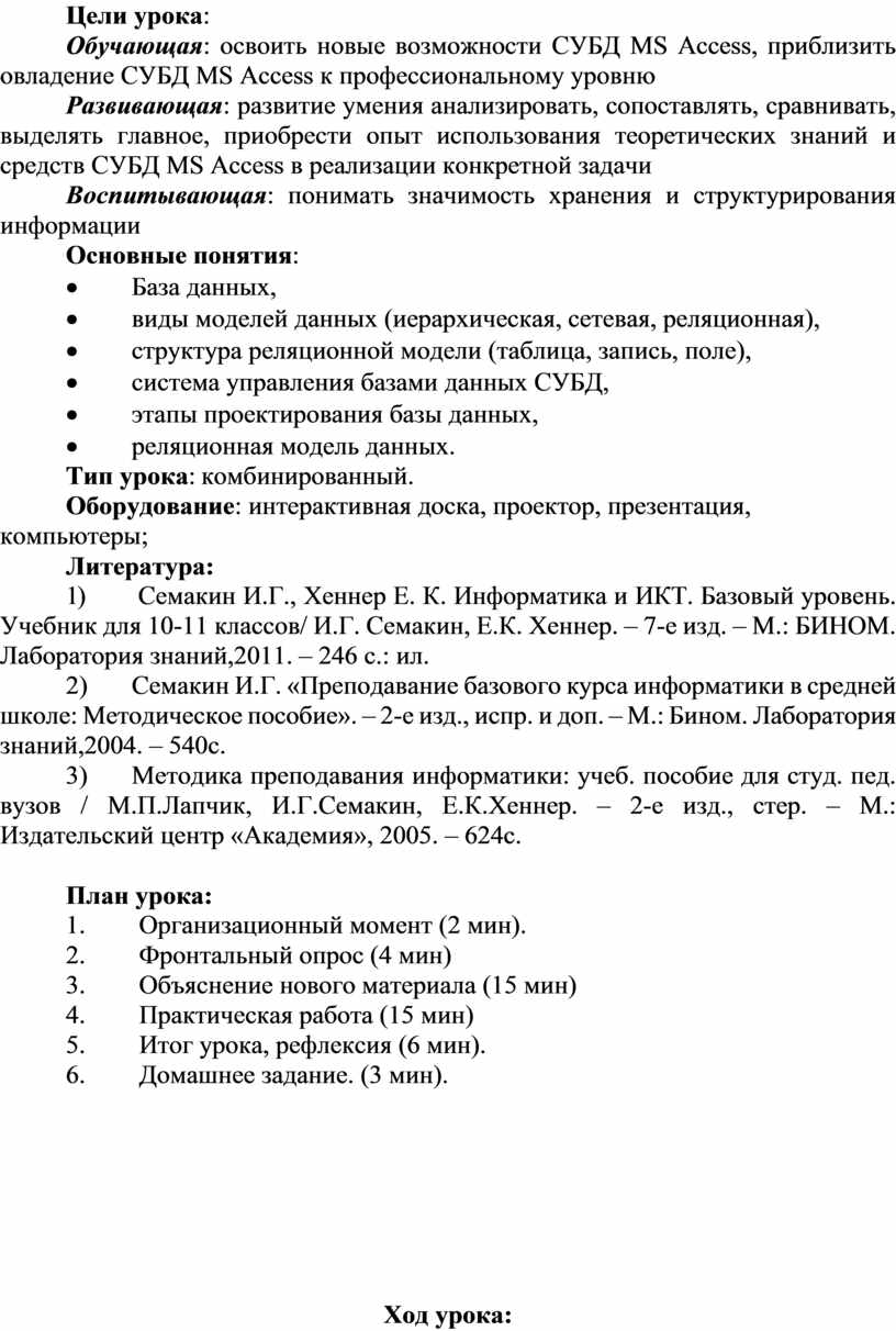 2) Семакин И.Г. «Преподавание базового курса информатики в средней школе: Методическое пособие». – 2-е изд., испр. и доп. – М.: Бином. Лаборатория знаний,2004. – 540с.