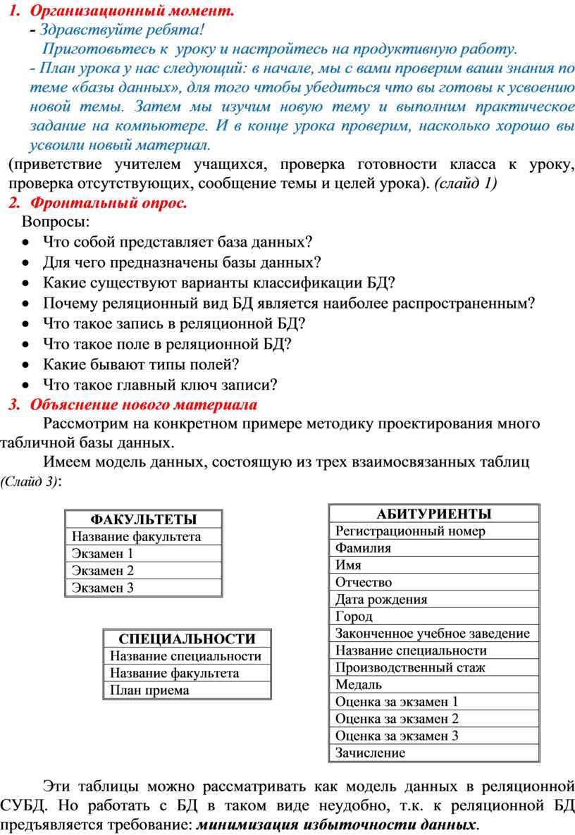 Создание базы данных «Приемная комиссия»