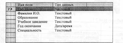 3. Создайте в режиме конструктора таблицу «Данные об образовании»