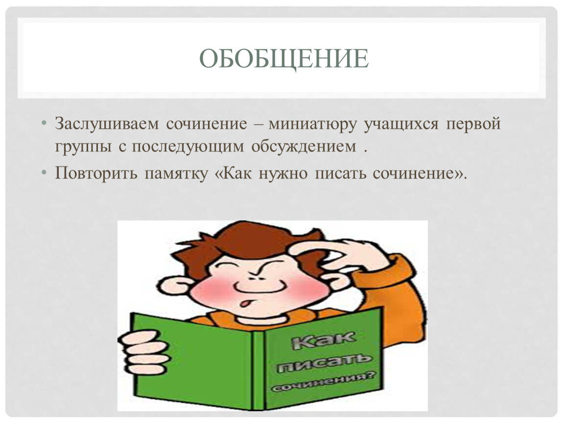 Заслушиваем сочинение – миниатюру учащихся первой группы с последующим обсуждением .