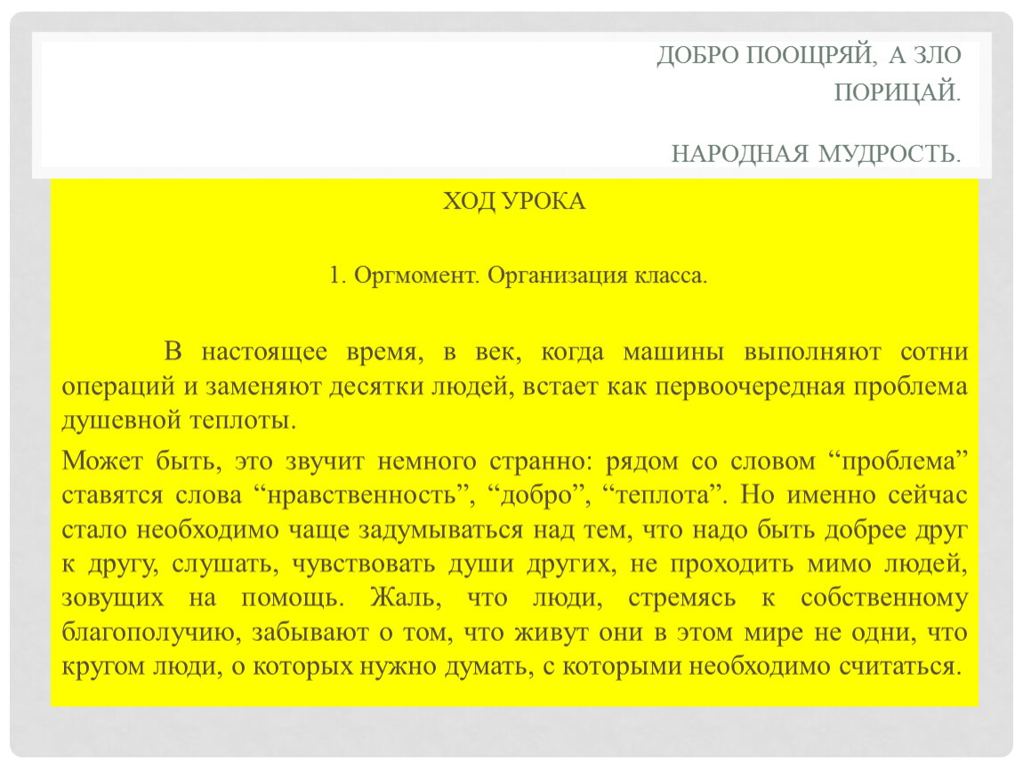 Может быть, это звучит немного странно: рядом со словом “проблема” ставятся слова “нравственность”, “добро”, “теплота”. Но именно сейчас стало необходимо чаще задумываться над тем, что надо быть добрее друг к другу, слушать, чувствовать души других, не проходить мимо людей, зовущих на помощь. Жаль, что люди, стремясь к собственному благополучию, забывают о том, что живут они в этом мире не одни, что кругом люди, о которых нужно думать, с которыми необходимо считаться.