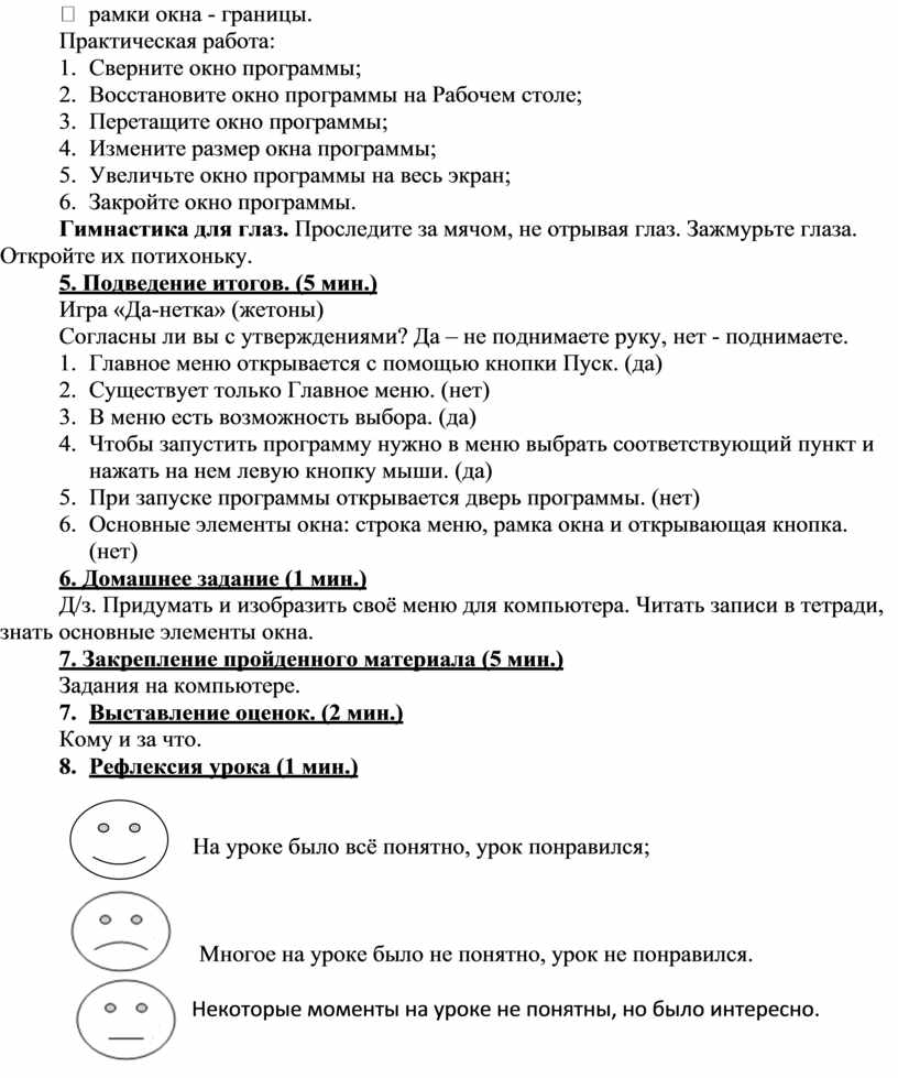 Д/з. Придумать и изобразить своё меню для компьютера. Читать записи в тетради, знать основные элементы окна.