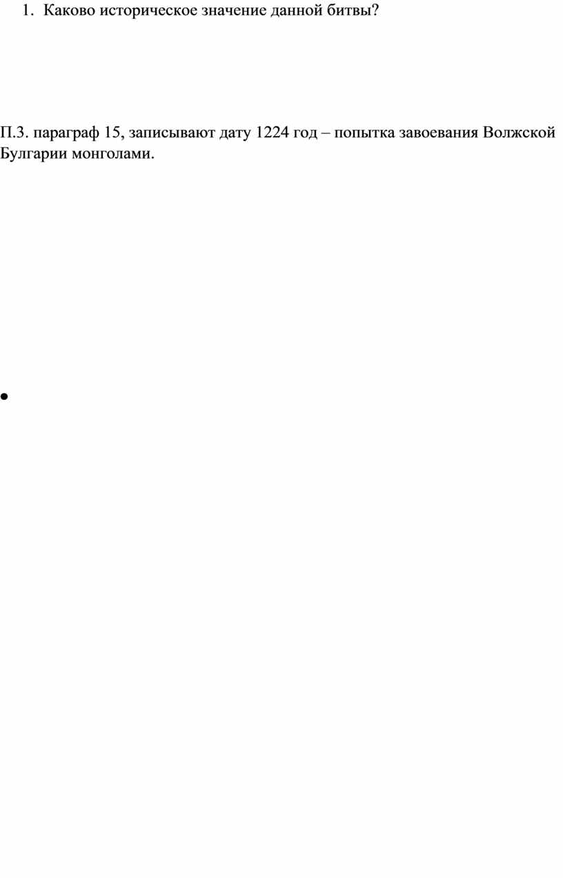 П.3. параграф 15, записывают дату 1224 год – попытка завоевания Волжской Булгарии монголами.