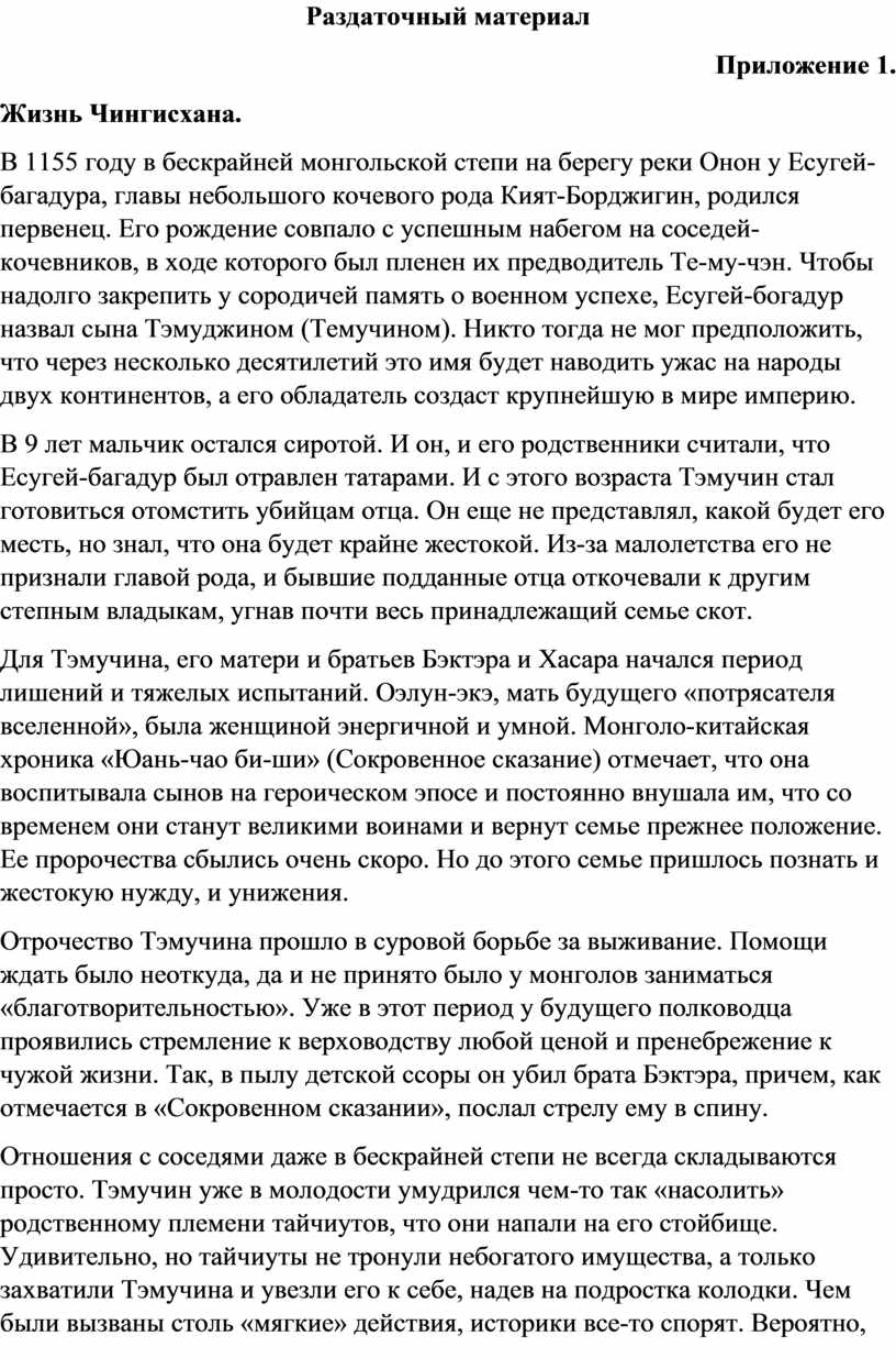 - Параграф 15 прочитать, выучить даты и термины. Напишите мини сочинение «Судьба Чингисхана» |