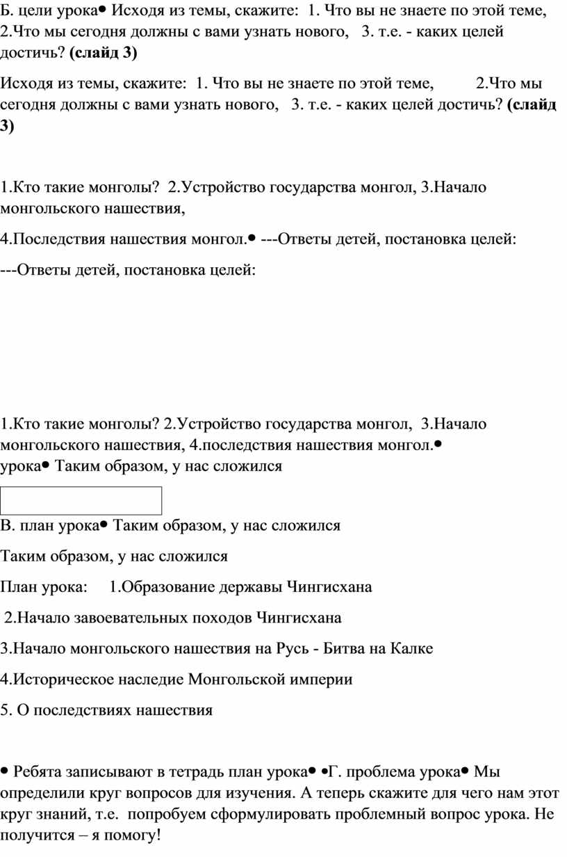 1.Кто такие монголы? 2.Устройство государства монгол, 3.Начало монгольского нашествия, 4.последствия нашествия монгол. |