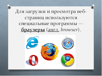 - А при помощи чего можно просматривать Web-страницы? (Web-браузеры) (слайд 7-8)