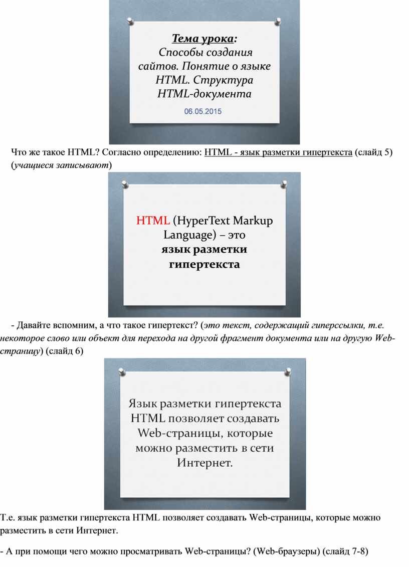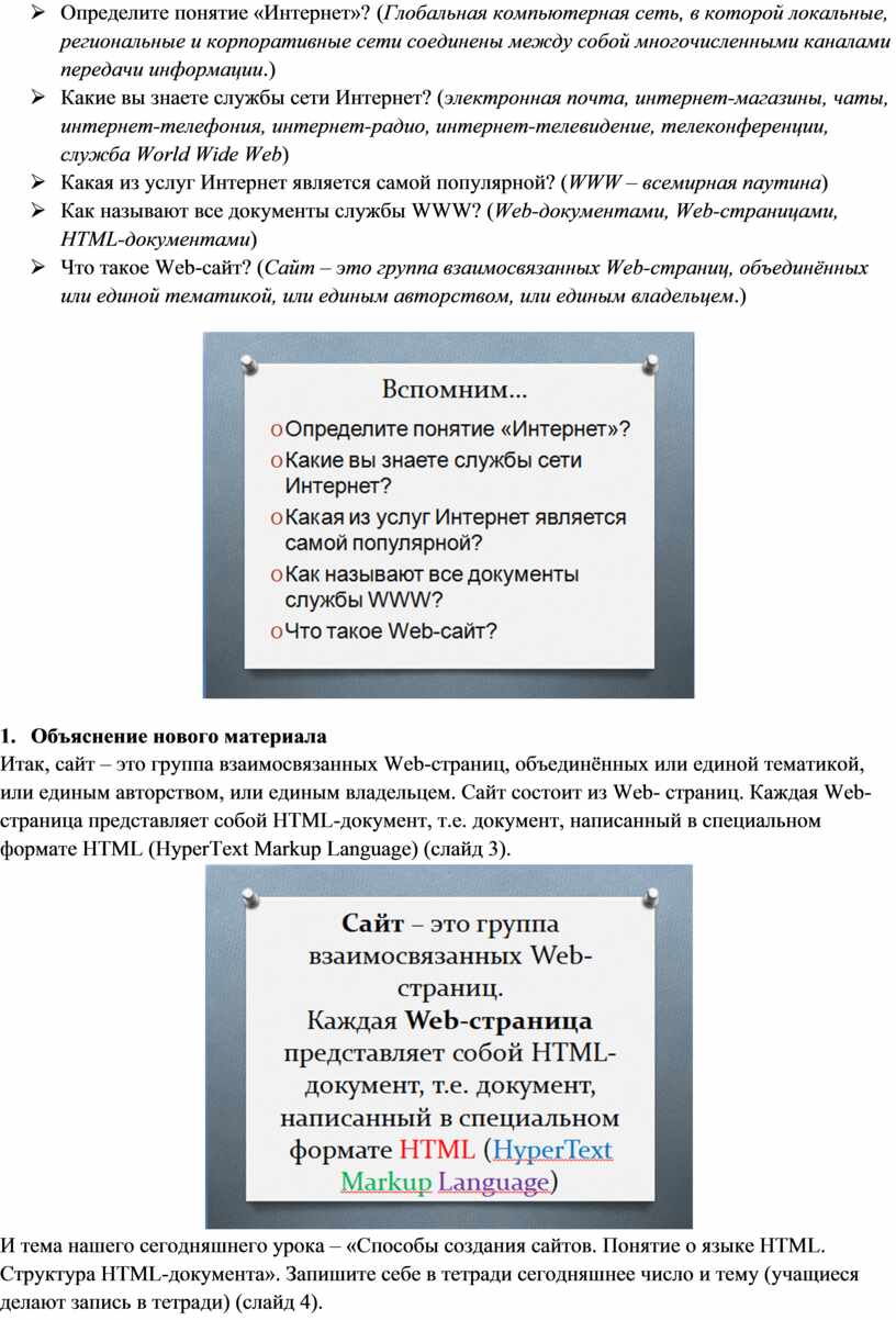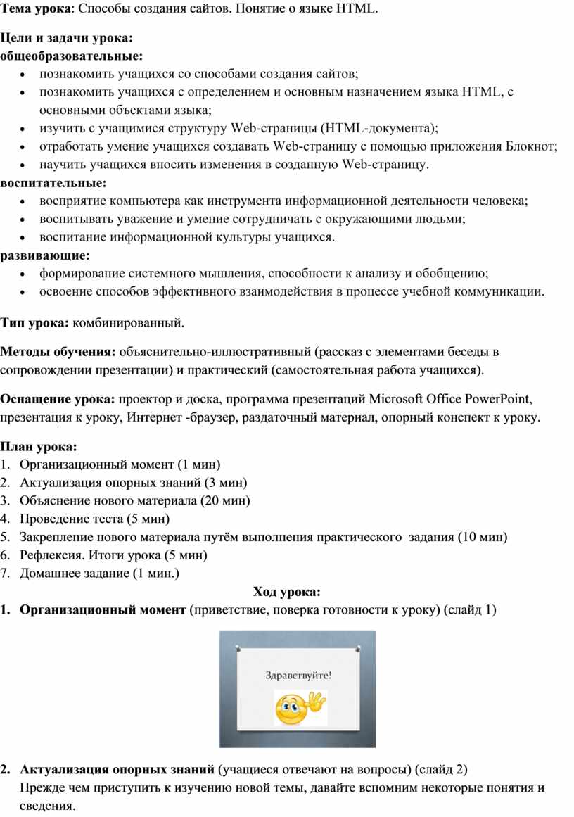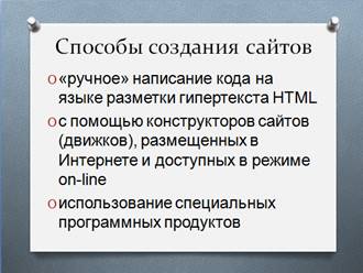 Тема урока: Способы создания сайтов. Понятие о языке HTML.