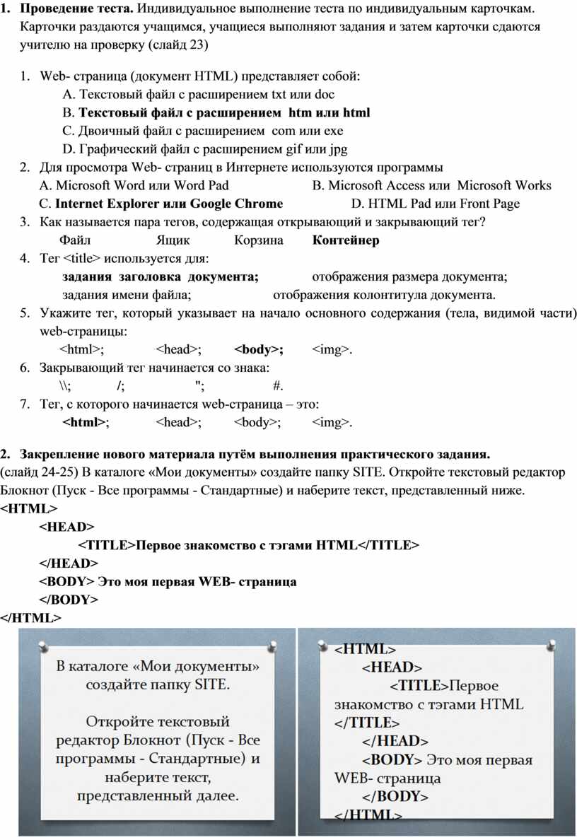 · изучить с учащимися структуру Web-страницы (HTML-документа);