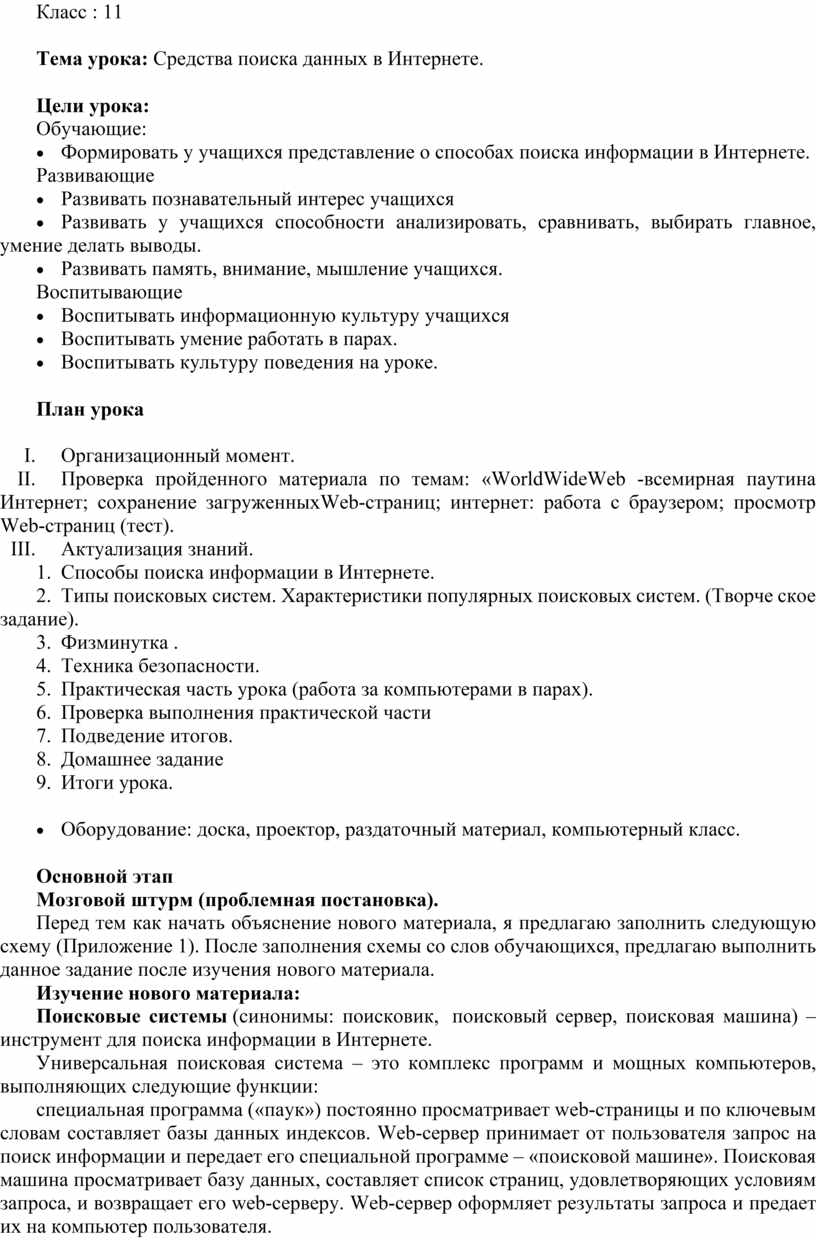 · Формировать у учащихся представление о способах поиска информации в Интернете.