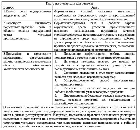 содержание ключ-карты для учителя представлено на рисунке 4.