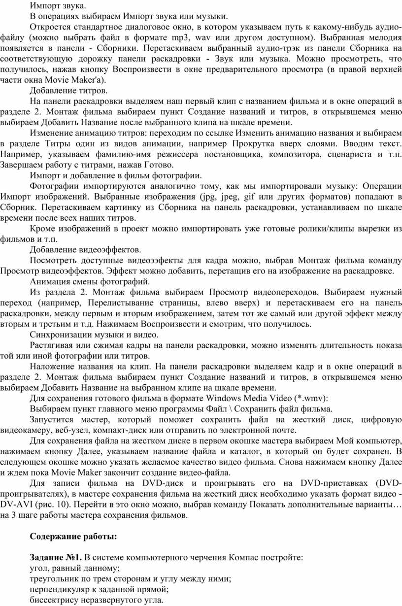 Цель: ознакомиться с системами автоматизированного проектирования, с программами и оборудованием создания графических и мультимедийных объектов; выработать практические навыки аудио- и видеомонтажа с использованием Windows Movie Maker.