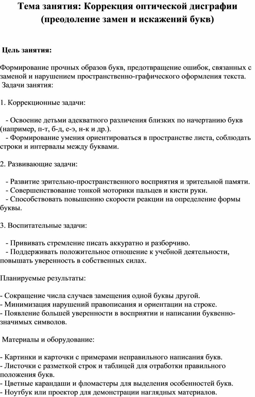 Тема занятия: Коррекция оптической дисграфии (преодоление замен и искажений букв)