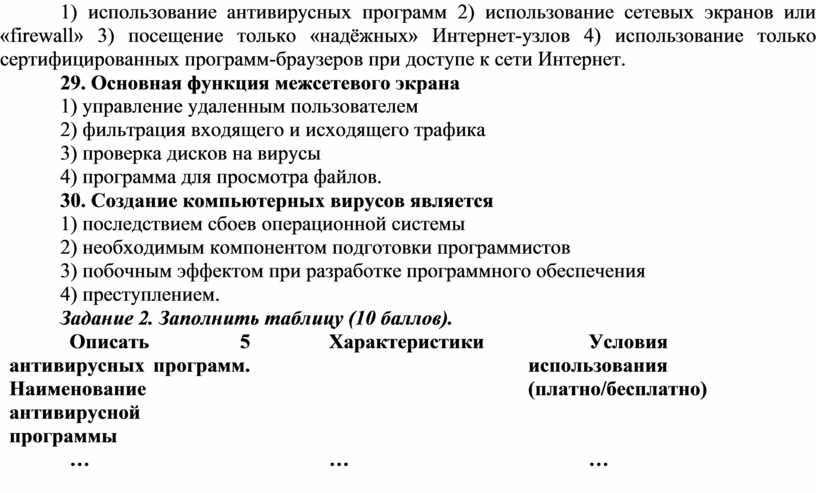 Задание тест 30 баллов
