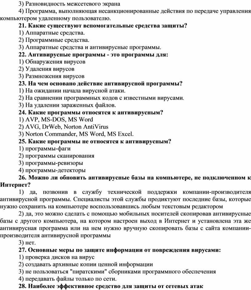 25. Какие программы не относятся к антивирусным?