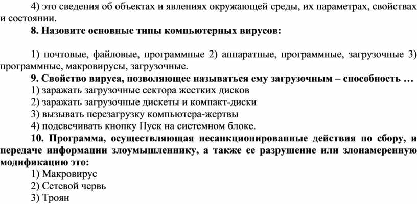 8. Назовите основные типы компьютерных вирусов: