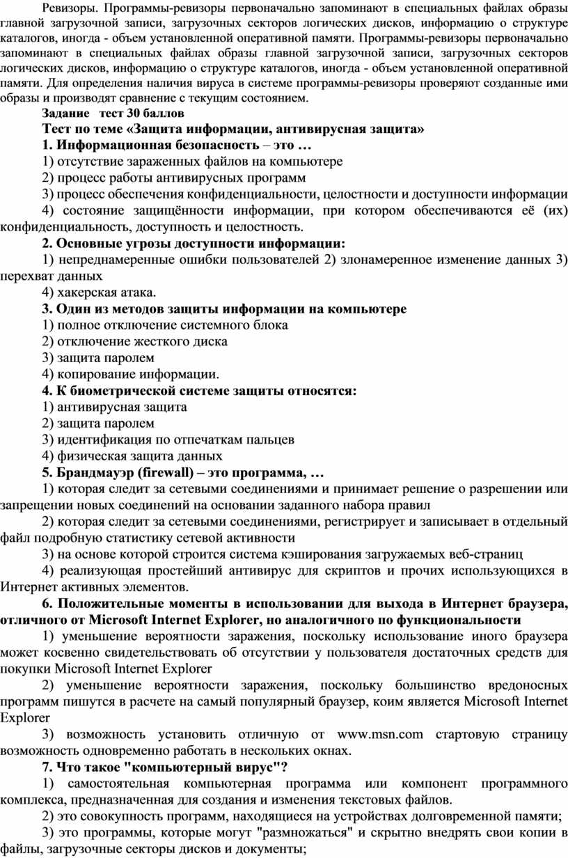 Тест по теме «Защита информации, антивирусная защита»
