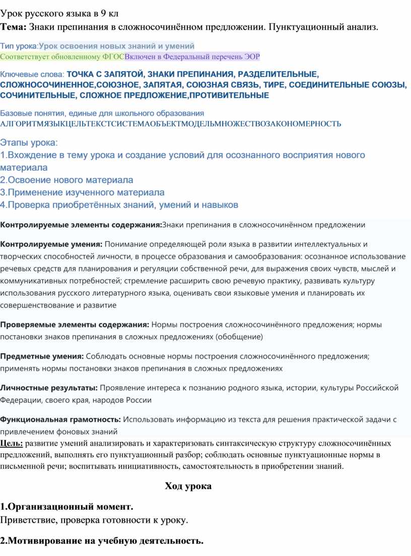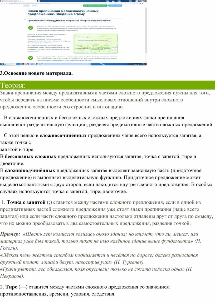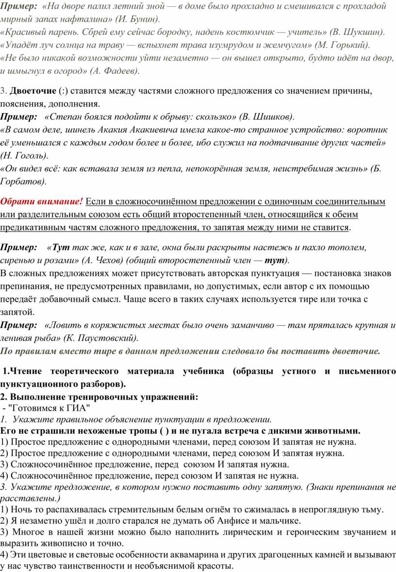 1.Чтение теоретического материала учебника (образцы устного и письменного пунктуационного разборов).