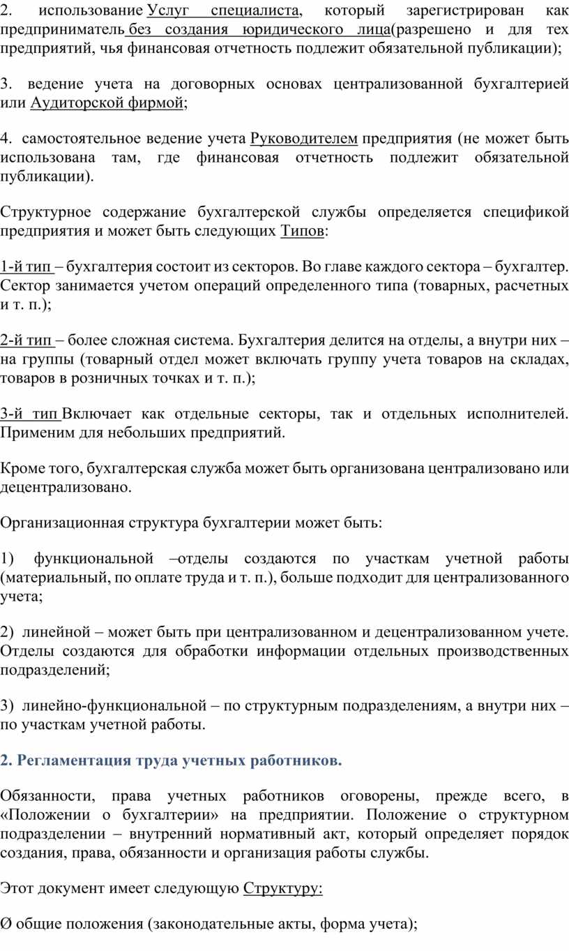 2. Регламентация труда учетных работников.