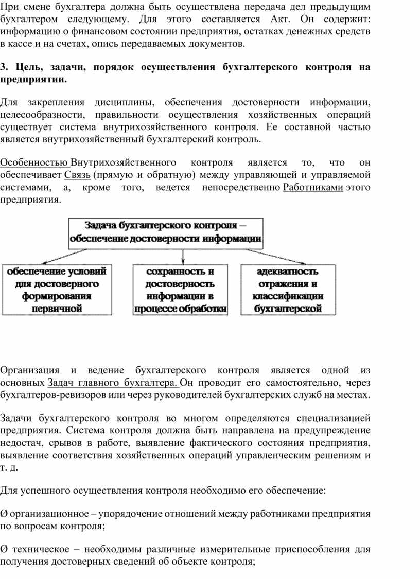 3. Цель, задачи, порядок осуществления бухгалтерского контроля на предприятии.