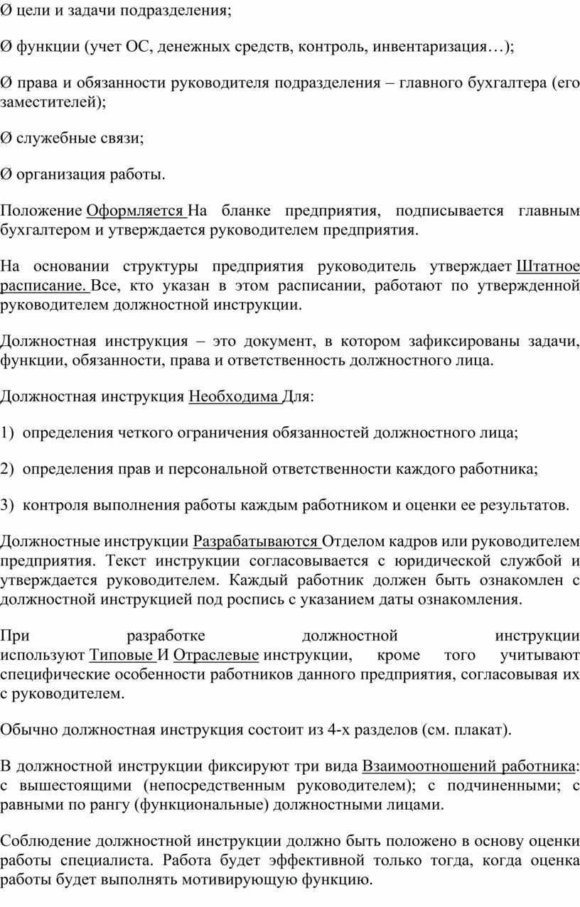 Должностная инструкция Необходима Для: