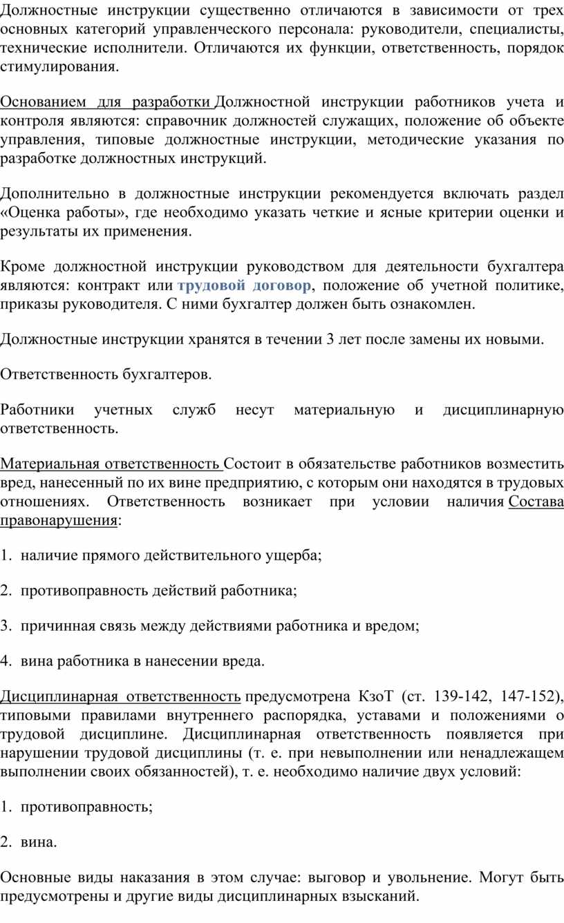 Работники учетных служб несут материальную и дисциплинарную ответственность.