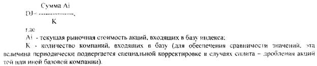 Промисловий індекс DJ розраховується за формулою: