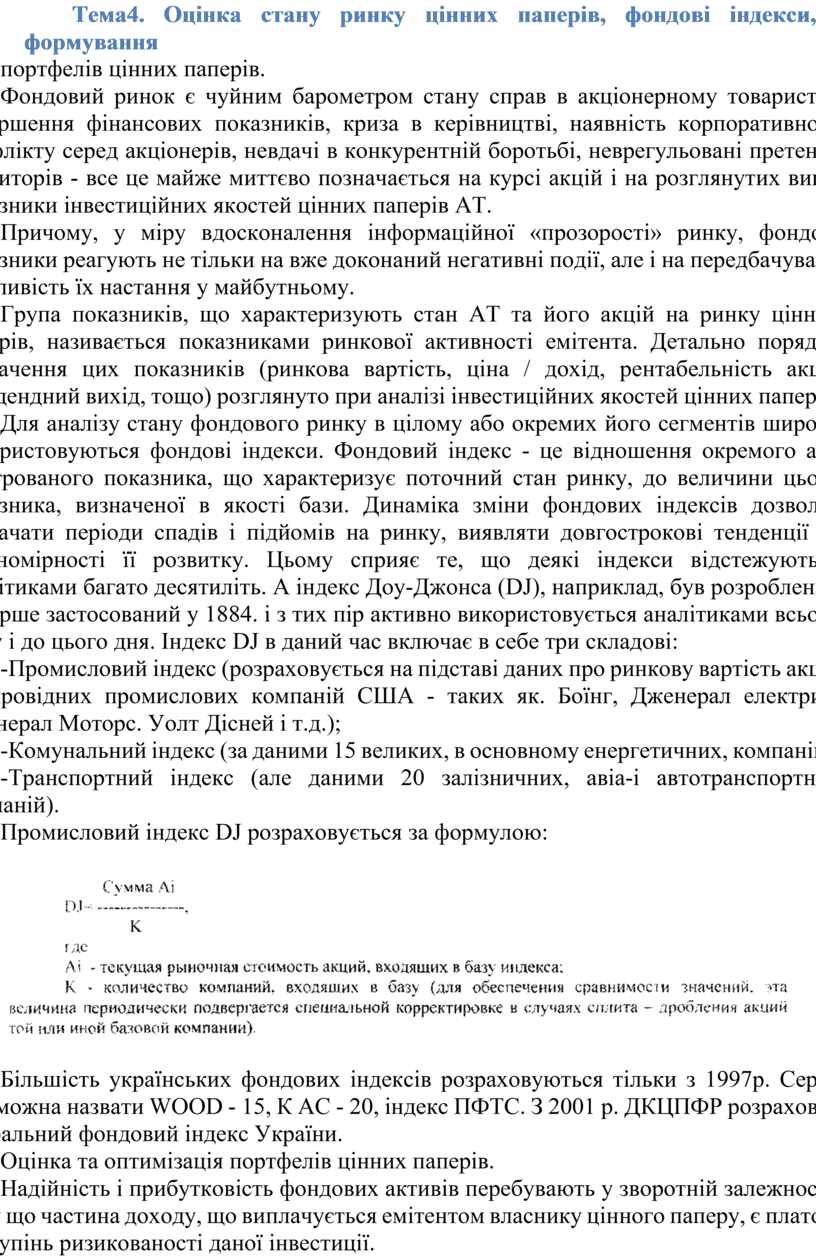 Тема4. Оцінка стану ринку цінних паперів, фондові індекси, формування