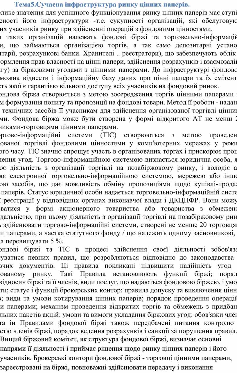 Тема5.Сучасна інфраструктура ринку цінних паперів.