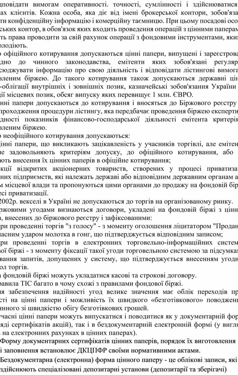 Біржовими угодами визнаються договори, укладені на фондовій біржі з цінних паперів, внесених до біржового реєстру і зафіксованими: