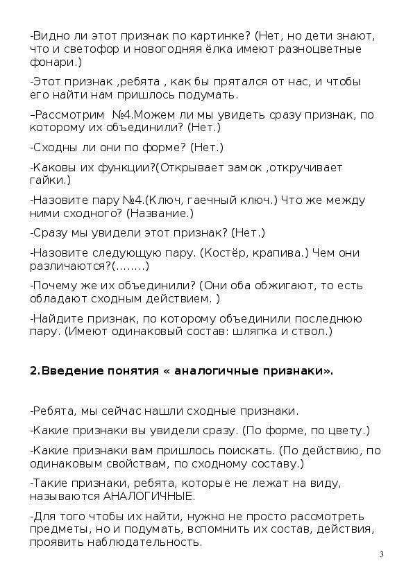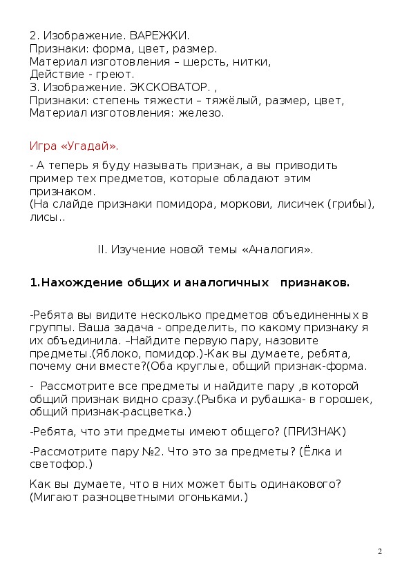 Цели: образовательная: познакомить учащихся с понятиями «аналогия», «аналогичные признаки»; научить устанавливать аналогию между различными предметами на основе их свойств;