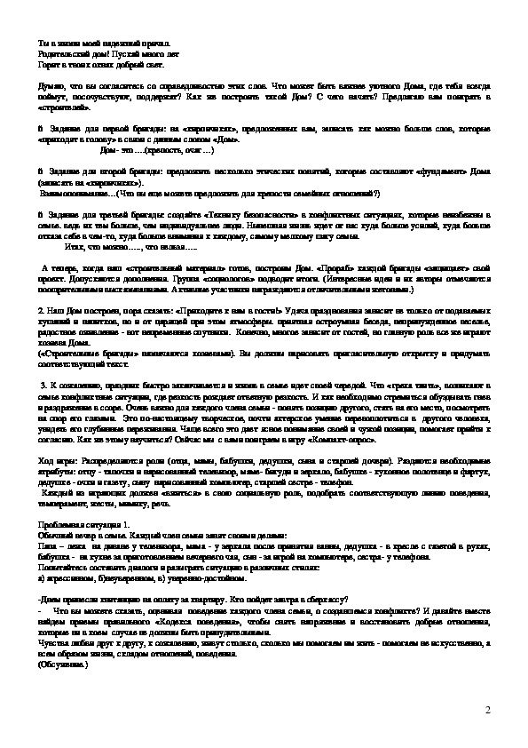 идеалами, отношением к жизни. Что семья может дать ребенку? В чем ее психологическая сила? Дом и родители