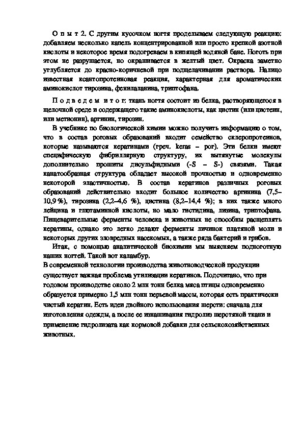дно пробирки!). Ноготь растворился. Теперь попробуем выяснить, из чего он