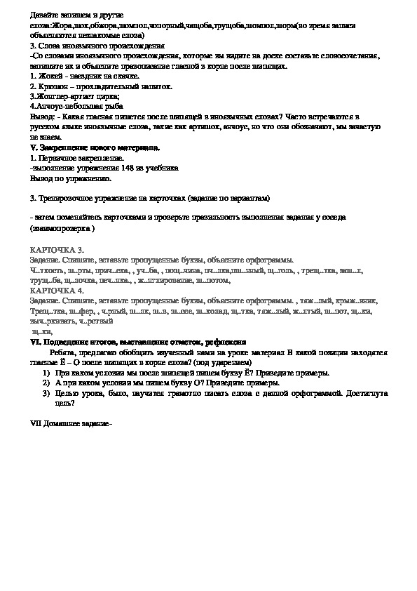Вывод: Какая гласная пишется после шипящей в иноязычных словах? Часто встречаются в