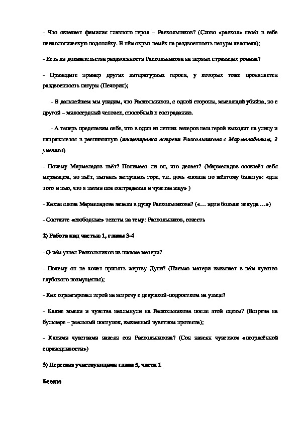 Составте «свободные» тексты на тему: Раскольников, совесть