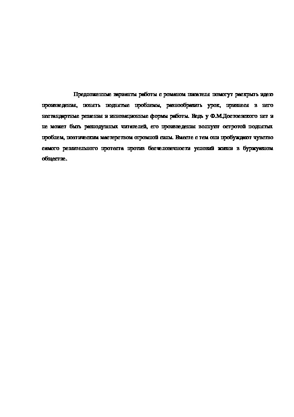 нестандартные решения и инновационные формы работы. Ведь у Ф.М.Достоевского нет и