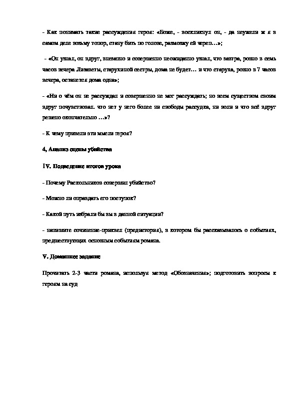 В дальнейшем мы увидим, что Раскольников, с одной стороны, мыслящий убийца, но с
