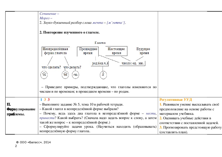 – Развитие умений определять форму глагола, ставить глагол в неопределённую форму, писать слова с орфограммой