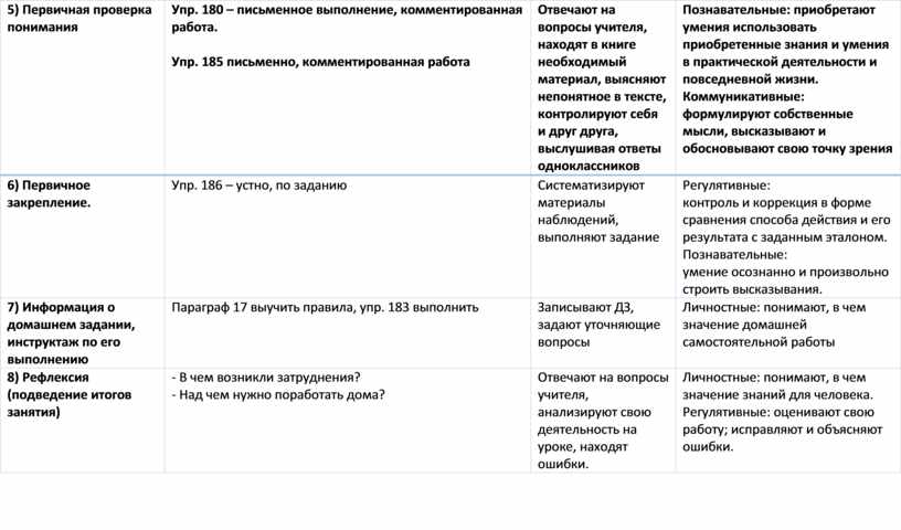 Личностные: понимают, в чем значение домашней самостоятельной работы |